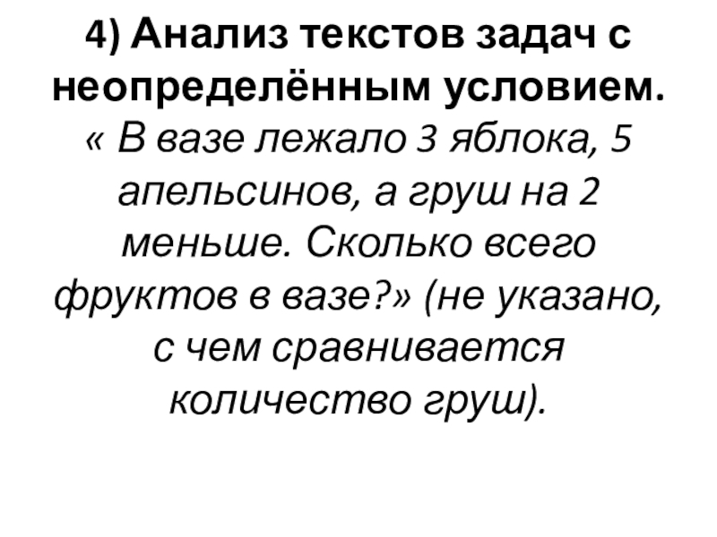 Слайд 194) Анализ текстов задач с неопределённым условием.