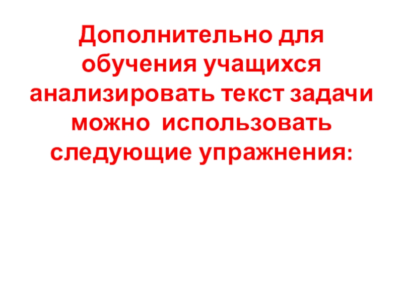 Слайд 15Дополнительно для обучения учащихся анализировать текст задачи можно использовать следующие упражнения: