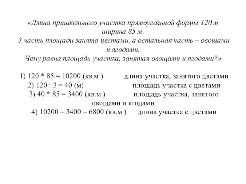 Слайд 83«Длина пришкольного участка прямоугольной формы 120 м ширина 85 м.