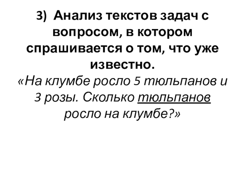 Слайд 183) Анализ текстов задач с вопросом, в котором спрашивается о том,