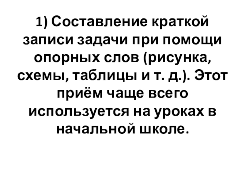 2) Пересказ задачи своими словами (этот приём способствует более глубокому осмыслению прочитанного).