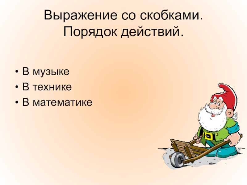 Выражение со скобками. Порядок действий.В музыкеВ техникеВ математике