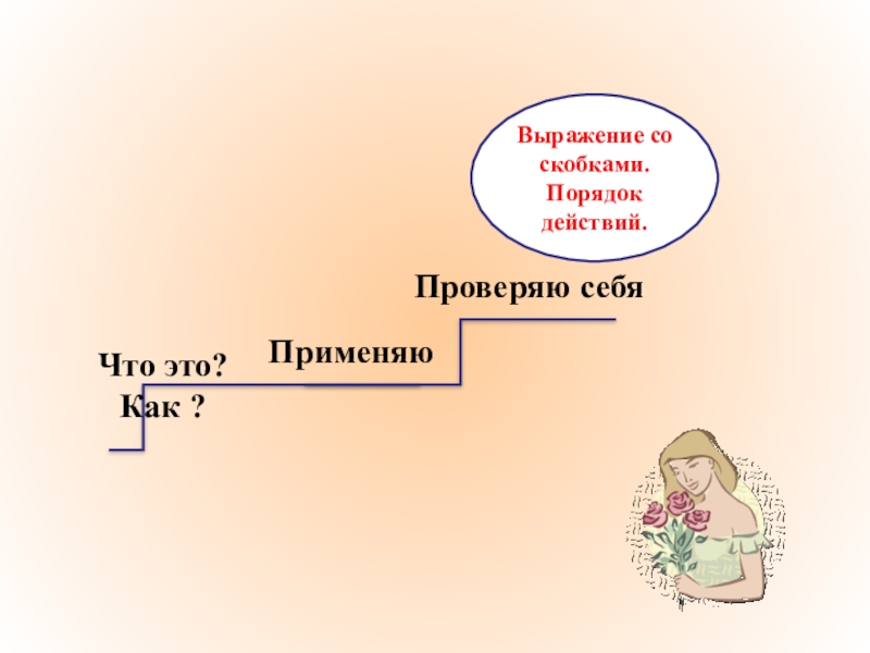Выражение со скобками.Порядок действий.ПрименяюЧто это? Как ?Проверяю себя