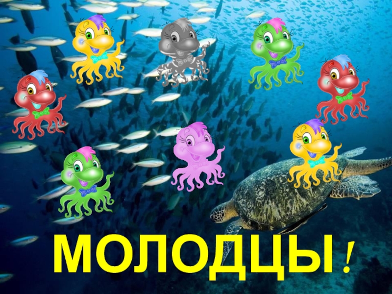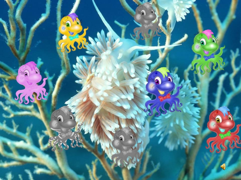 Слайд 4Жил осьминог со своей осьминожкой, И было у них осьминожков немножко…