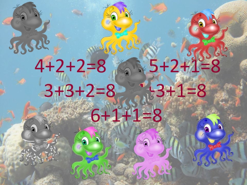 Презентация, доклад по математике на тему Сколько ног у осьминога? Состав числа 8
