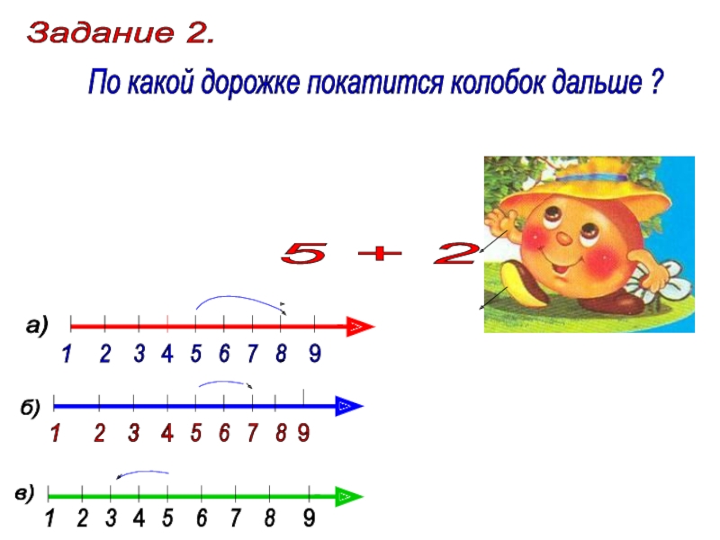 б) 1 + 7 = 8