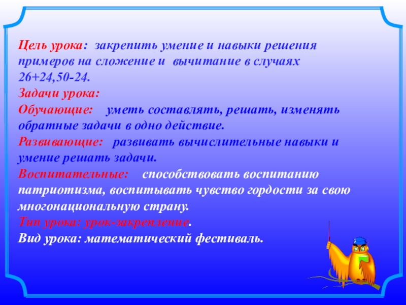 К числу 50 прибавь сумму чисел 20 и 6;