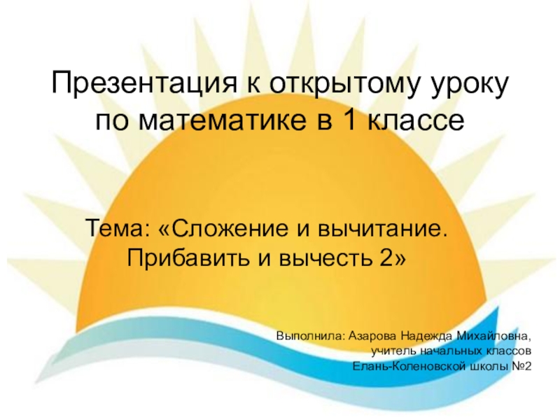 Тема: «Сложение и вычитание. Прибавить и вычесть 2»