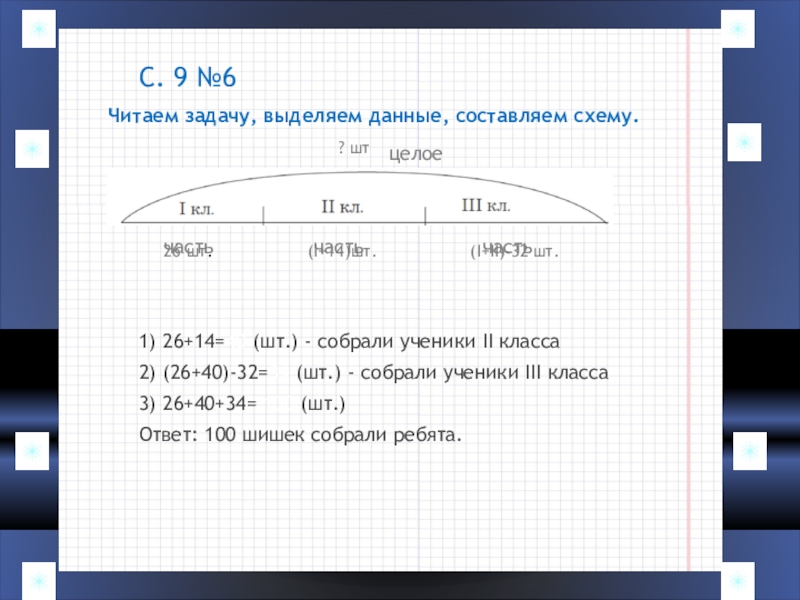 3) 26+40+34= 100 (шт.)