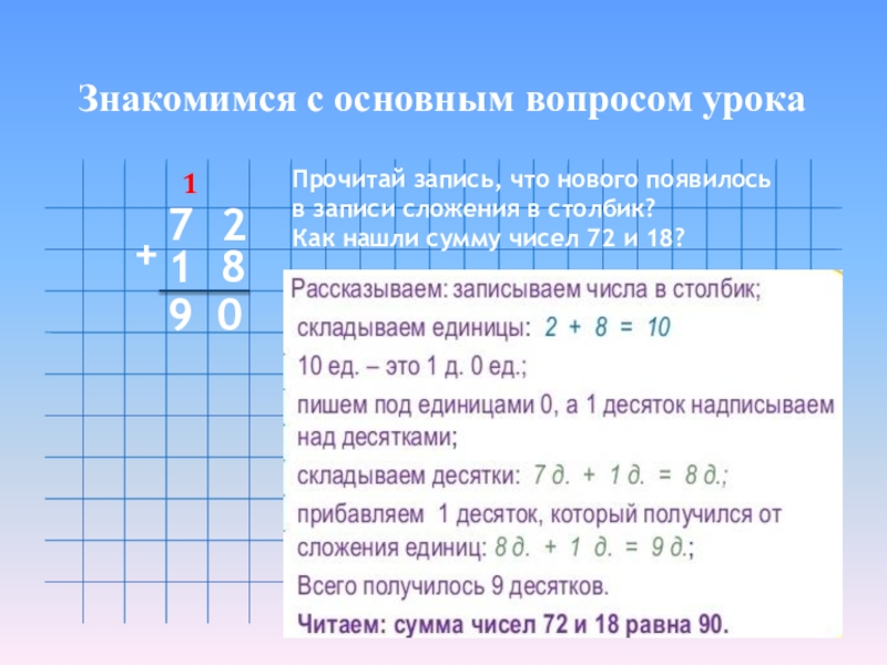 Как нашли сумму чисел 72 и 18?