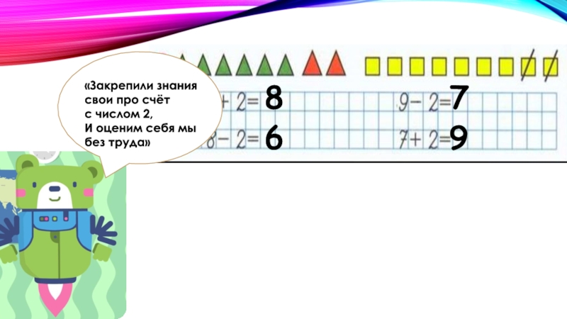 Презентация, доклад по математике на тему Сложение и вычитание вида + 2, -2 (1 класс)