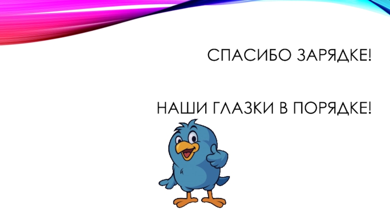 Слайд 20Спасибо зарядке! Наши глазки в порядке!