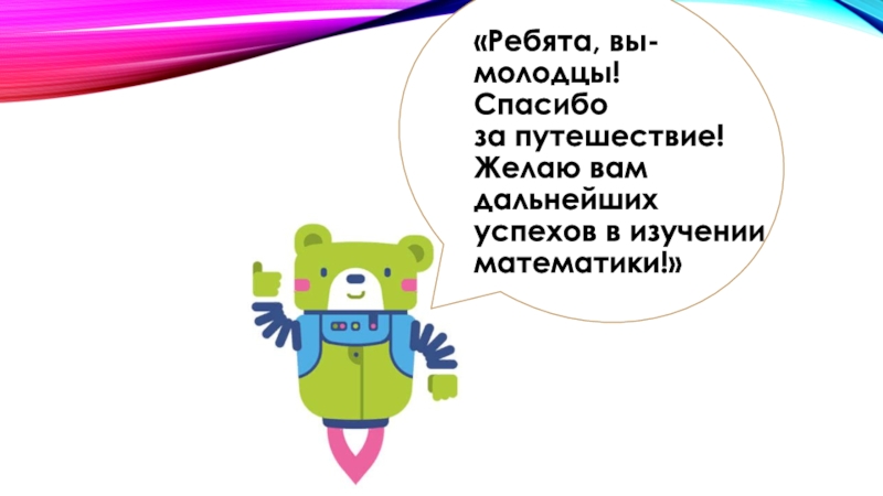 за путешествие! Желаю вам дальнейших успехов в изучении математики!»