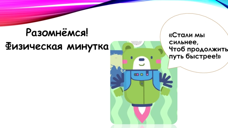 Разомнёмся!Физическая минутка«Стали мы сильнее,  Чтоб продолжить путь быстрее!»