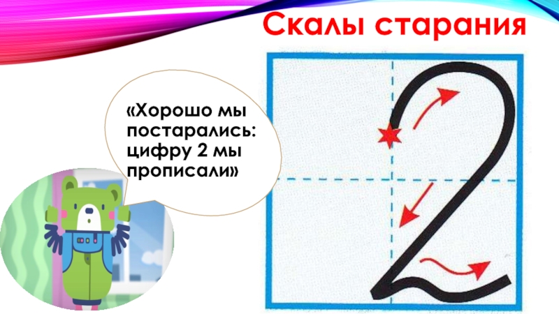 Скалы старания«Хорошо мы постарались: цифру 2 мы прописали»