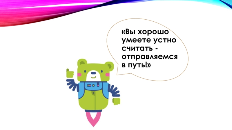 Слайд 5«Вы хорошо умеете устно считать - отправляемся в путь!»