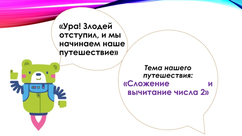 Слайд 8«Ура! Злодей отступил, и мы начинаем наше путешествие»