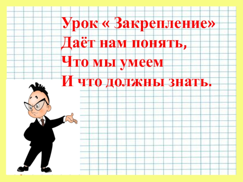 Урок « Закрепление»Даёт нам понять, Что мы умеемИ что должны знать.