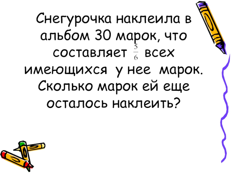 Слайд 10 Снегурочка наклеила в альбом 30 марок, что составляет всех имеющихся