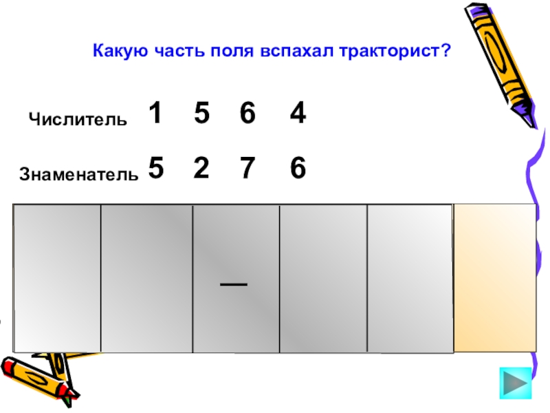 Числитель 5164Знаменатель5276Какую часть поля вспахал тракторист?