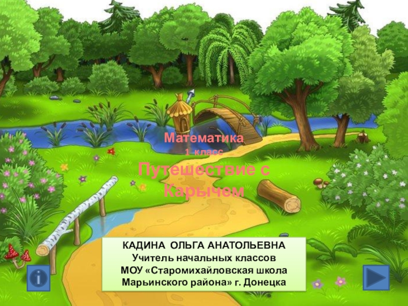 КАДИНА ОЛЬГА АНАТОЛЬЕВНАУчитель начальных классовМОУ «Старомихайловская школа Марьинского района» г. ДонецкаМатематика 1 классПутешествие с Карычем