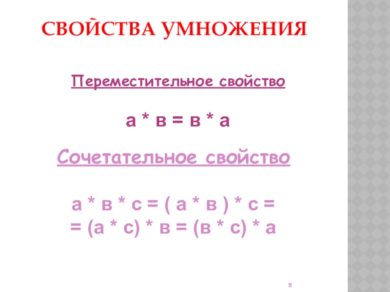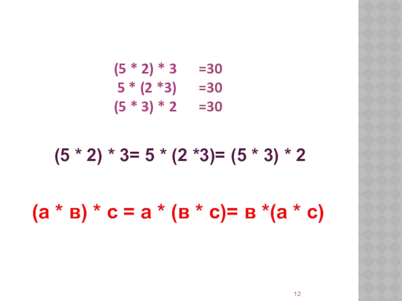 (а * в) * с = а * (в * с)= в *(а * с)