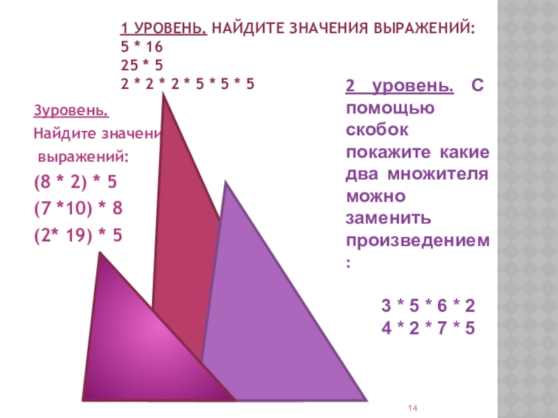 2 уровень. С помощью скобок покажите какие два множителя можно заменить произведением :