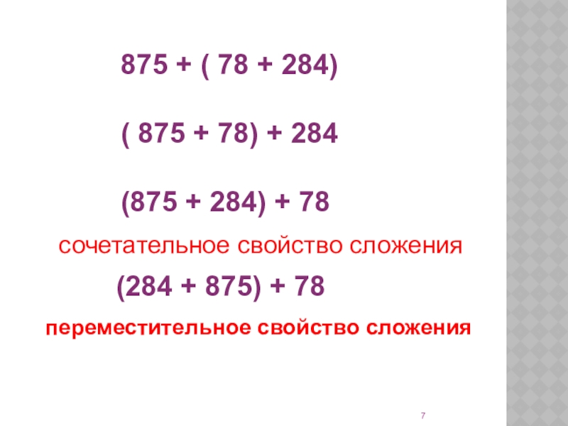 сочетательное свойство сложения
