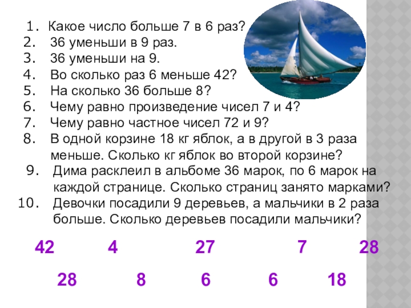 Во сколько раз 6 меньше 42?