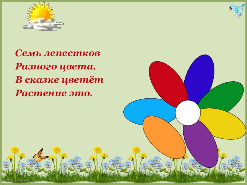 Семь лепестковРазного цвета.В сказке цветётРастение это.