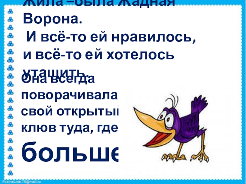 Она всегда поворачивала свой открытый клюв туда, где больше.