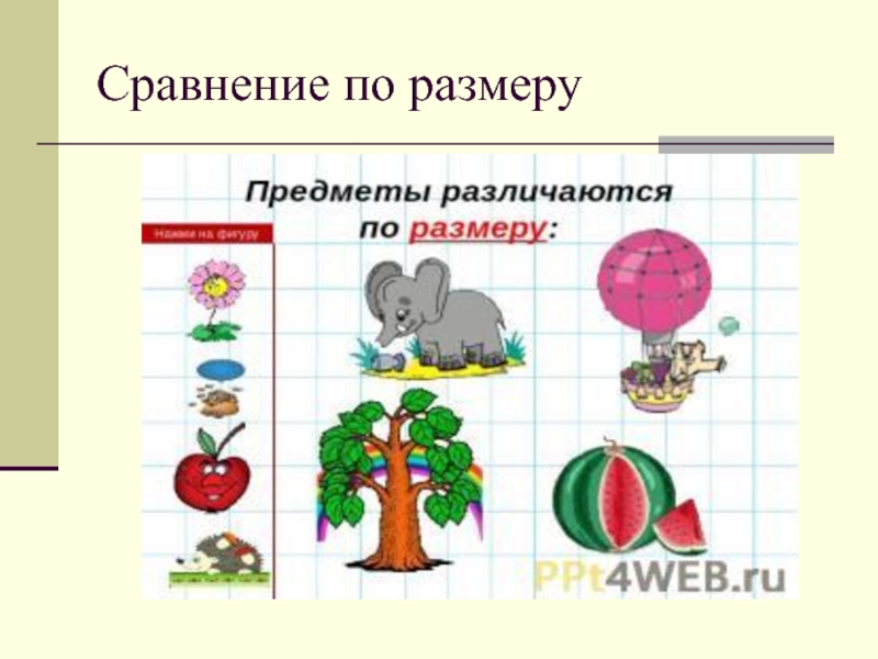Презентация, доклад по математике на тему Сравнение предметов (1 класс)