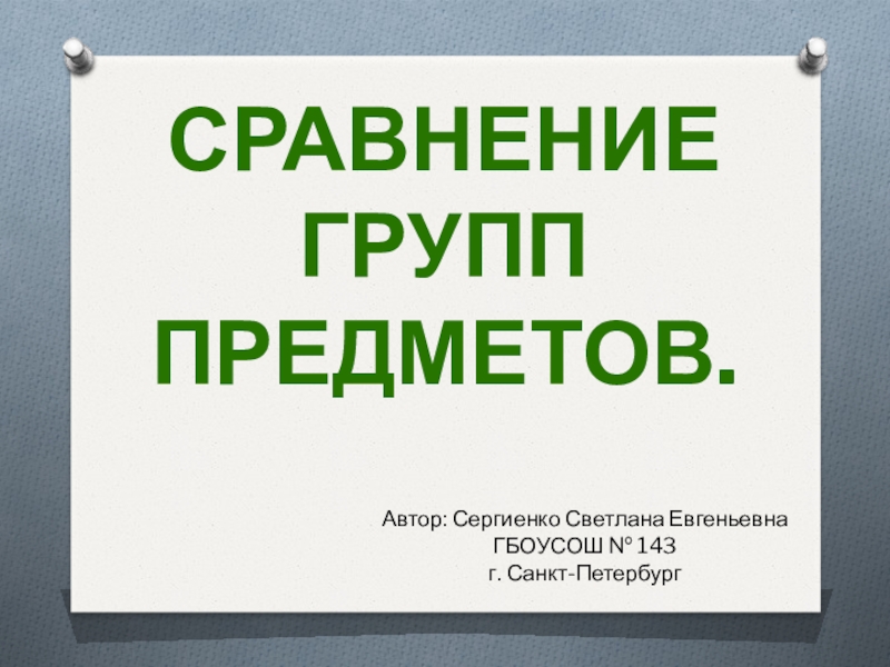 Сравнение групп предметов.Автор: Сергиенко Светлана ЕвгеньевнаГБОУСОШ № 143г. Санкт-Петербург