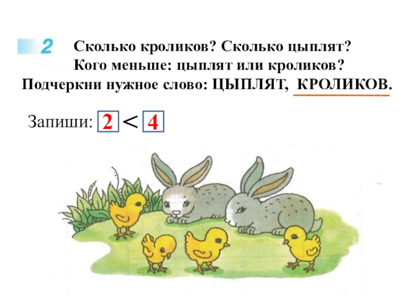 Слайд 8 Сколько кроликов? Сколько цыплят?