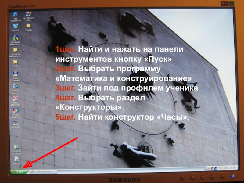1шаг. Найти и нажать на панели инструментов кнопку «Пуск»2шаг. Выбрать программу «Математика и конструирование»3шаг. Зайти под профилем