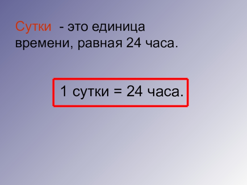 Слайд 6Сутки - это единица времени, равная 24 часа.