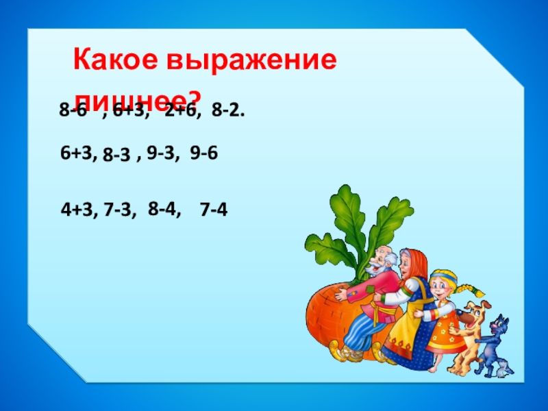 Какое выражение лишнее?8-6        2+6, 8-2., 6+3, 6+3,