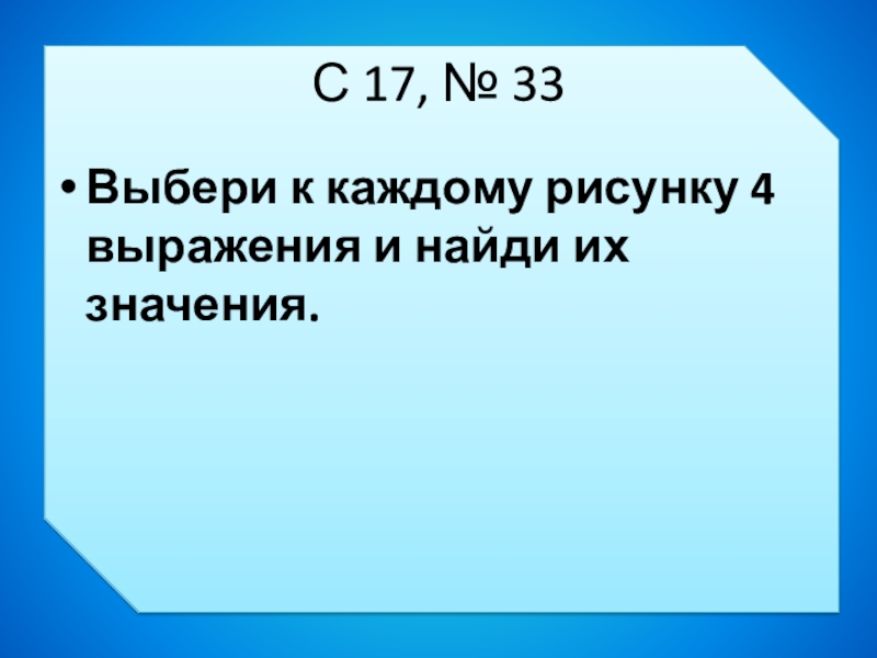 С 17, № 33Выбери к каждому рисунку 4 выражения и найди их значения.