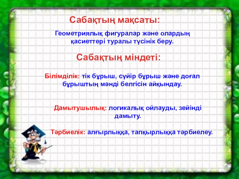 Дамытушылық: логикалық ойлауды, зейінді дамыту.
