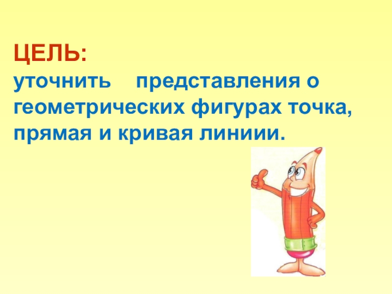 Слайд 6ЦЕЛЬ: уточнить представления о геометрических фигурах точка, прямая
