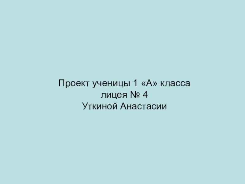 Слайд 1Проект ученицы 1 «А» класса лицея № 4 Уткиной Анастасии