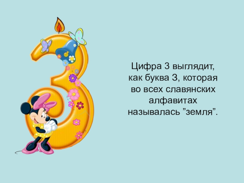Слайд 5Цифра 3 выглядит, как буква З, которая во всех славянских алфавитах