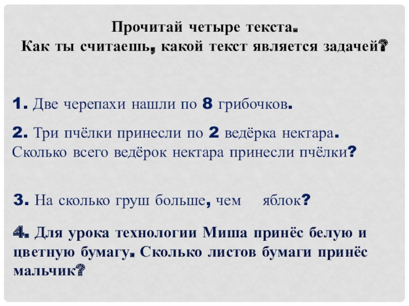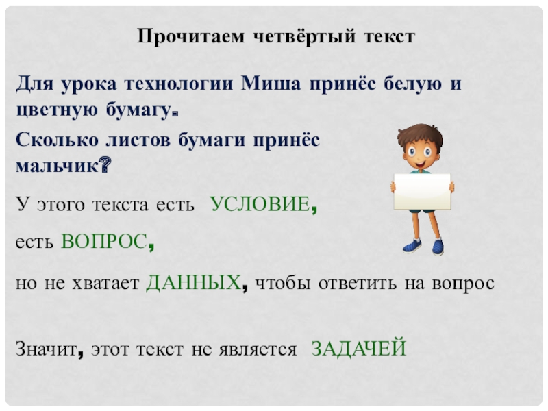 Значит, этот текст является ЗАДАЧЕЙ.