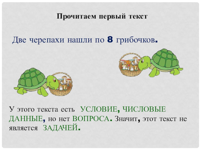 1. Две черепахи нашли по 8 грибочков.