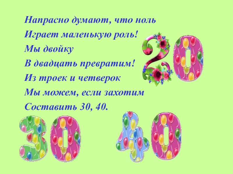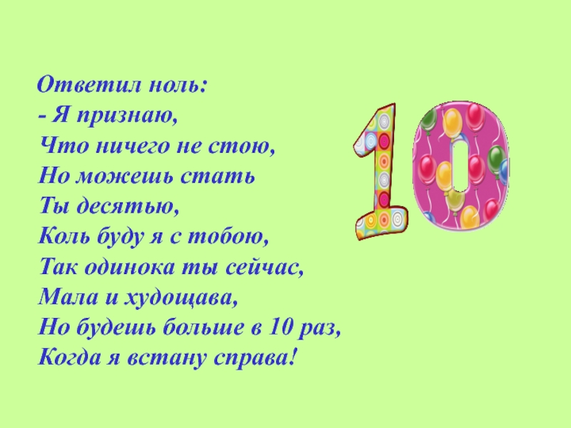 Напрасно думают, что ноль  Играет маленькую роль!   Мы двойку   В