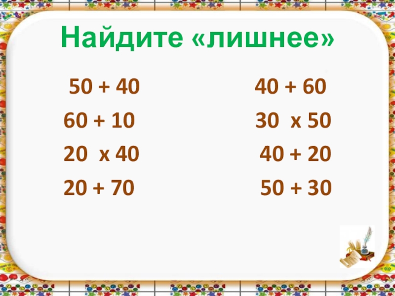 Найдите «лишнее» 50 + 40           40 +