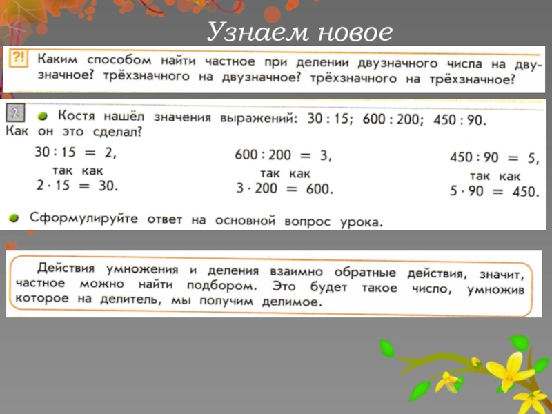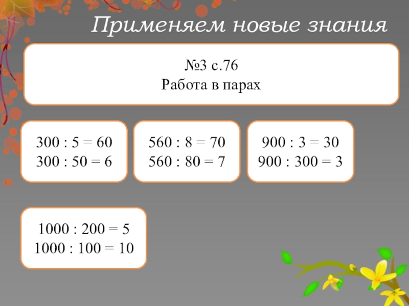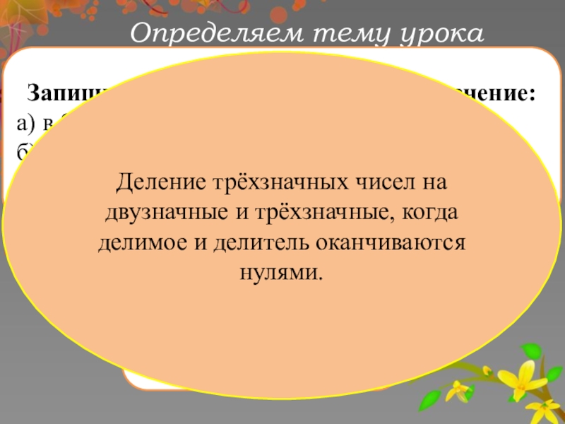 Деление трёхзначных чисел на двузначные и трёхзначные, когда делимое и делитель оканчиваются нулями.