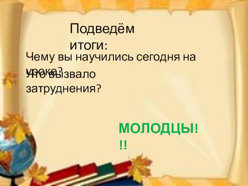Это сайт презентаций, где можно хранить и обмениваться своими презентациями, докладами, проектами, шаблонами в формате PowerPoint с другими пользователями. Мы помогаем школьникам, студентам, учителям, преподавателям хранить и обмениваться учебными материалами.