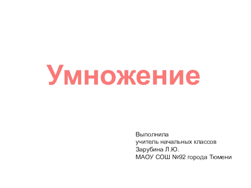 УмножениеВыполнилаучитель начальных классовЗарубина Л.Ю. МАОУ СОШ №92 города Тюмени