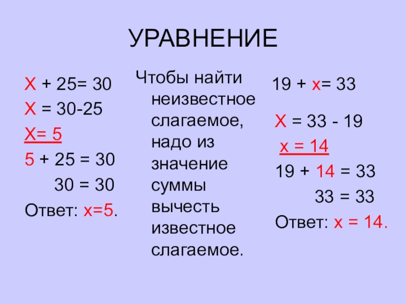 Чтобы найти неизвестное слагаемое, надо из значение суммы вычесть известное слагаемое.